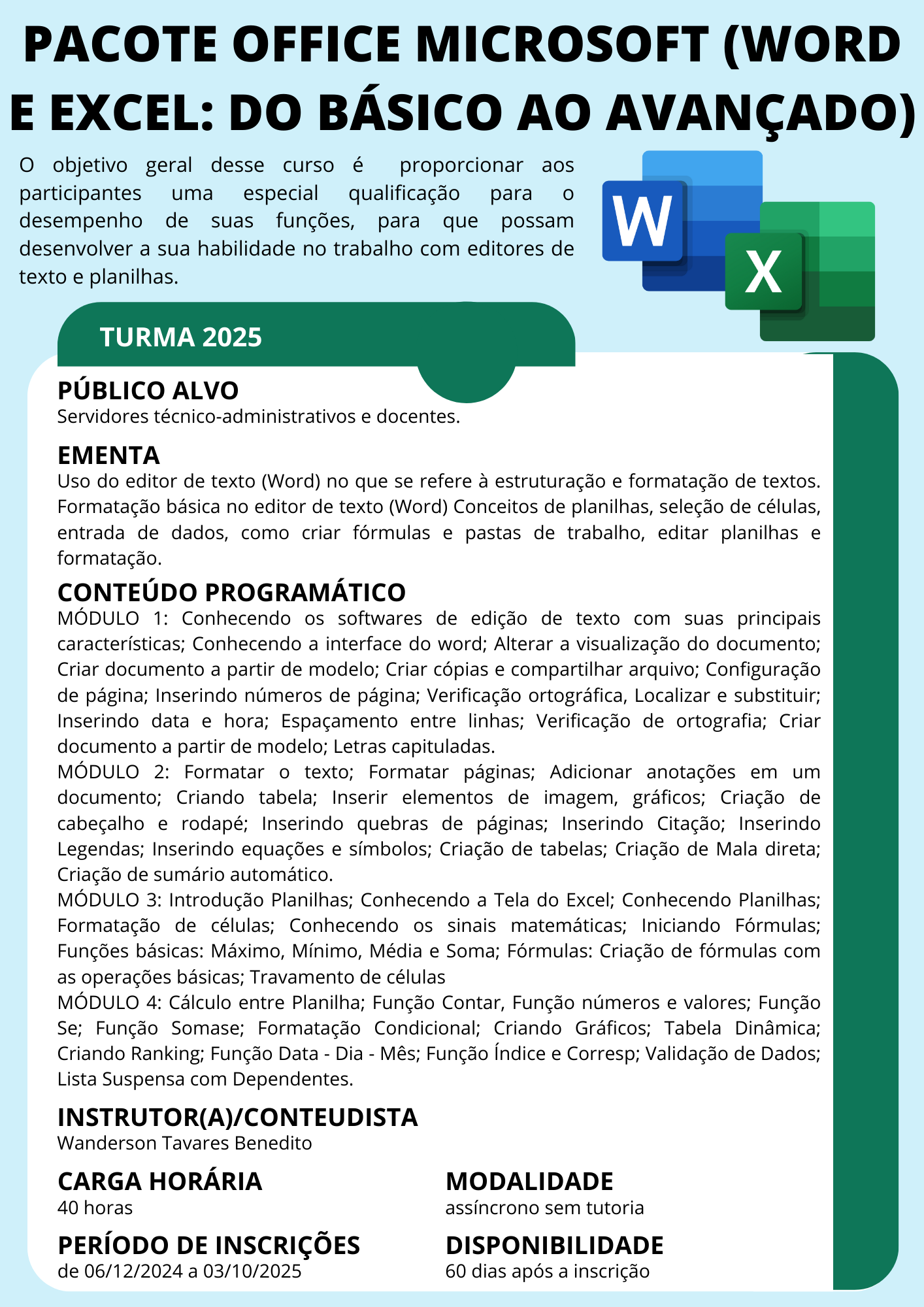Pacote Office Microsoft (Word e Excel: do básico ao avançado) - 2025