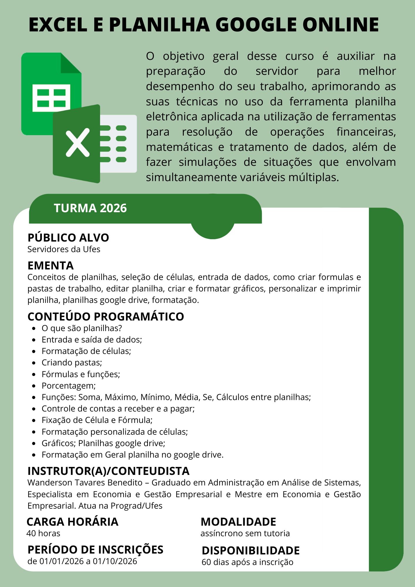 Excel e Planilha Google Online - 2026