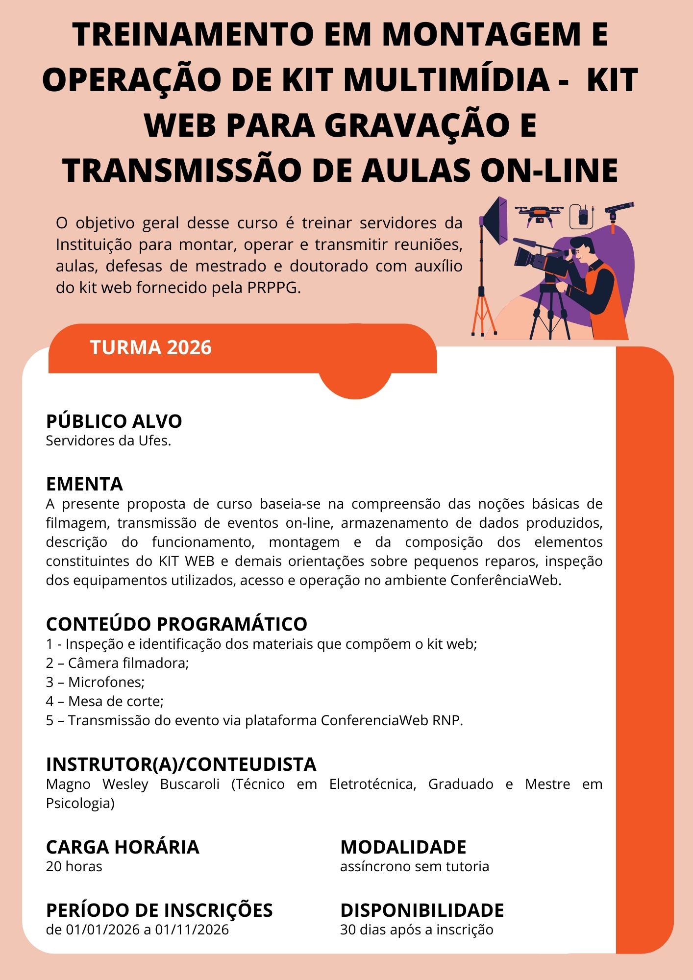 Treinamento em Montagem e Operação de KIT Multimídia - KIT WEB para Gravação e Transmissão de Aulas On-line - 2026